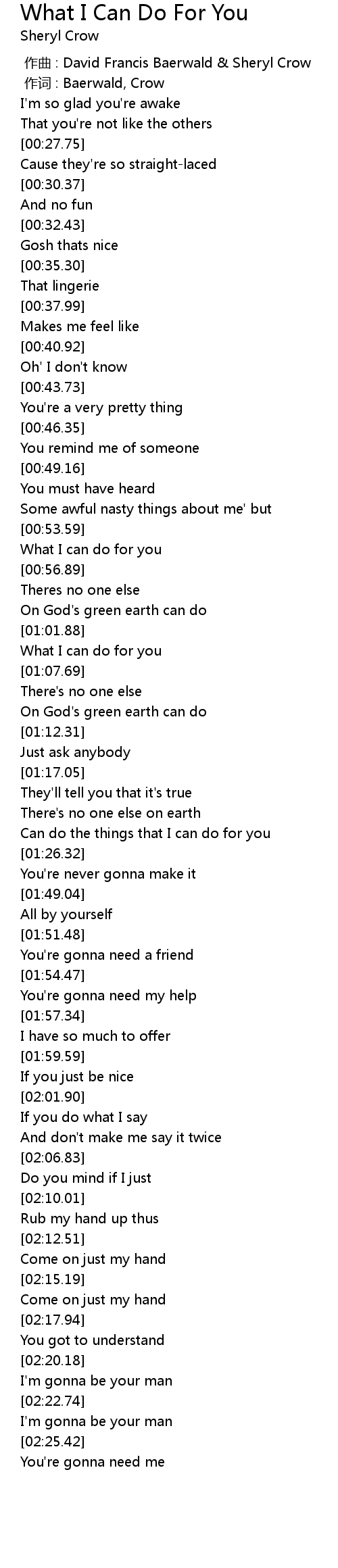 | [00:55.08] | What I can do for you |