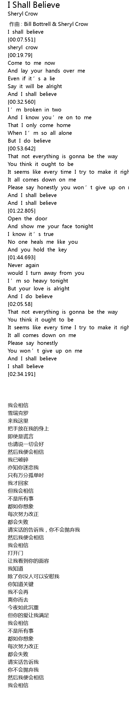 | [00:02.477] | I shall believe |