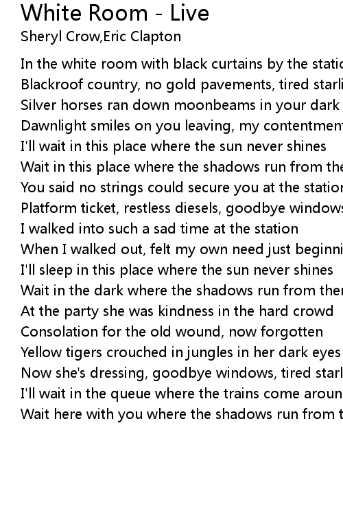 In the white room with black curtains by the station |