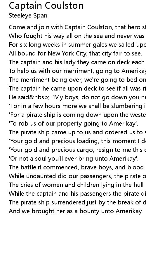 Come and join with Captain Coulston, that hero stout and bold |