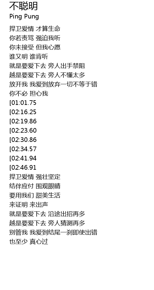| [03:14.97][02:30.86][01:17.39] | bù xiǎng cōng míng yóu yú bù cōng míng |
