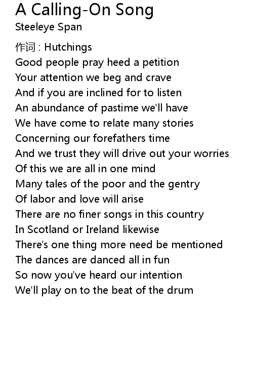 | Song | A Calling-On Song |