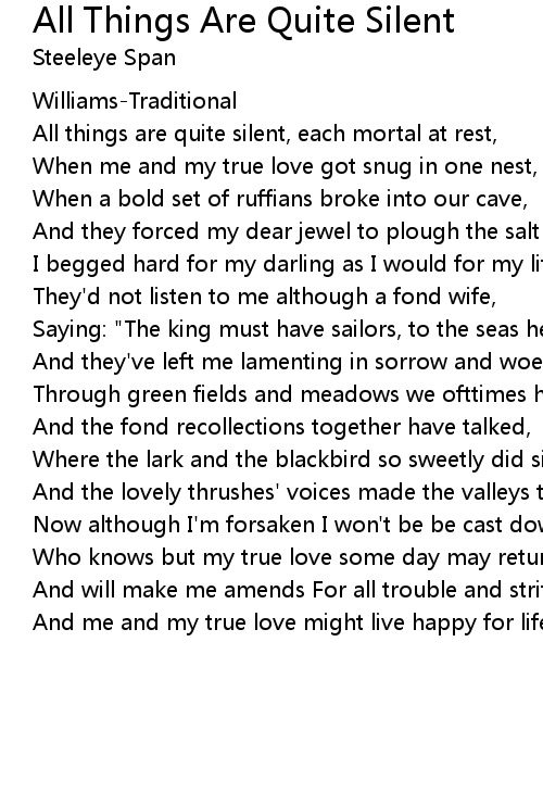 All things are quite silent, each mortal at rest, |