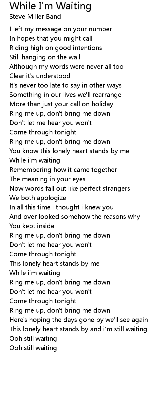 This lonely heart stands by and i'm still waiting |