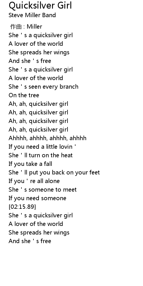 | [02:17.62] | She's a quicksilver girl |