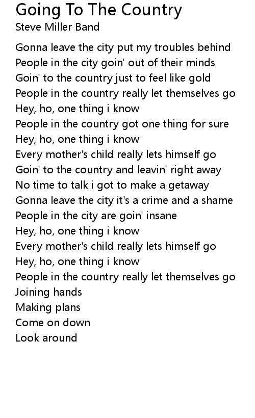 Goin' to the country and leavin' right away |