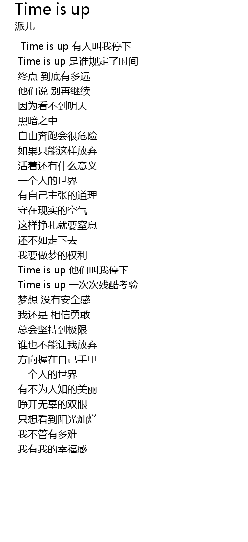 | Time is up 他们叫我停下 | |