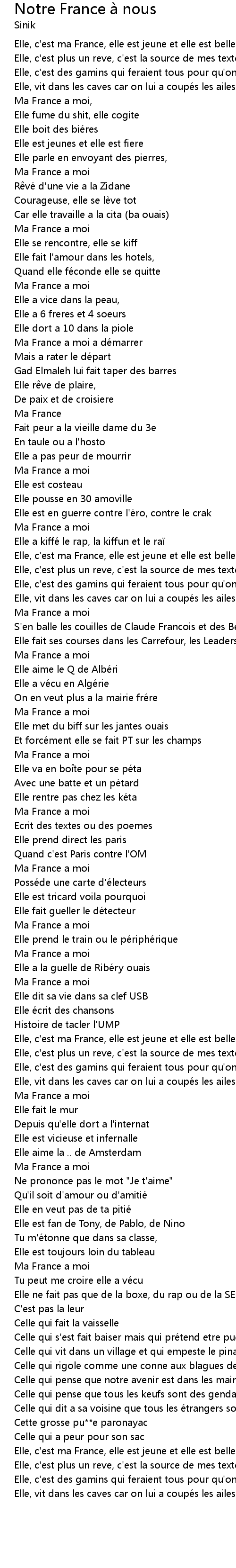 | Elle, c' est ma France, elle est jeune et elle est belle, | |