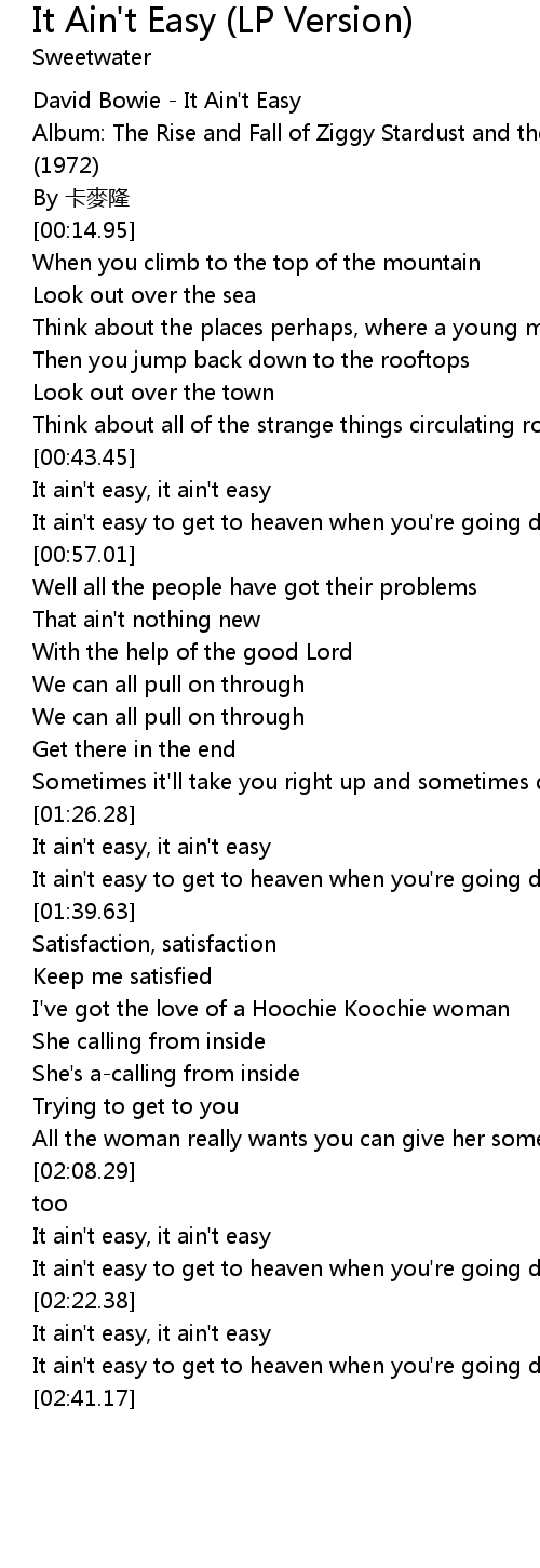 | [00:44.23] | It ain' t easy, it ain' t easy |