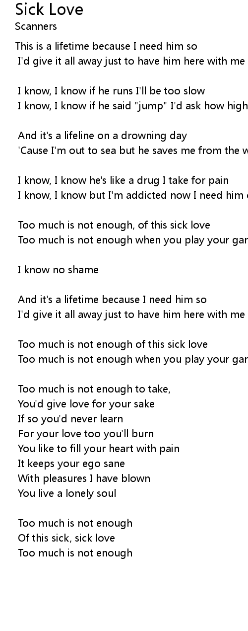 | Too much is not enough of this sick love | |