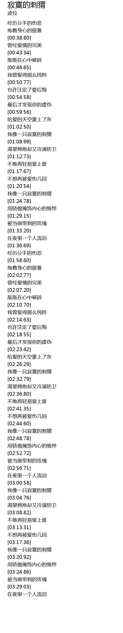 | [03:02.39] | 我像一只寂寞的刺猬 |