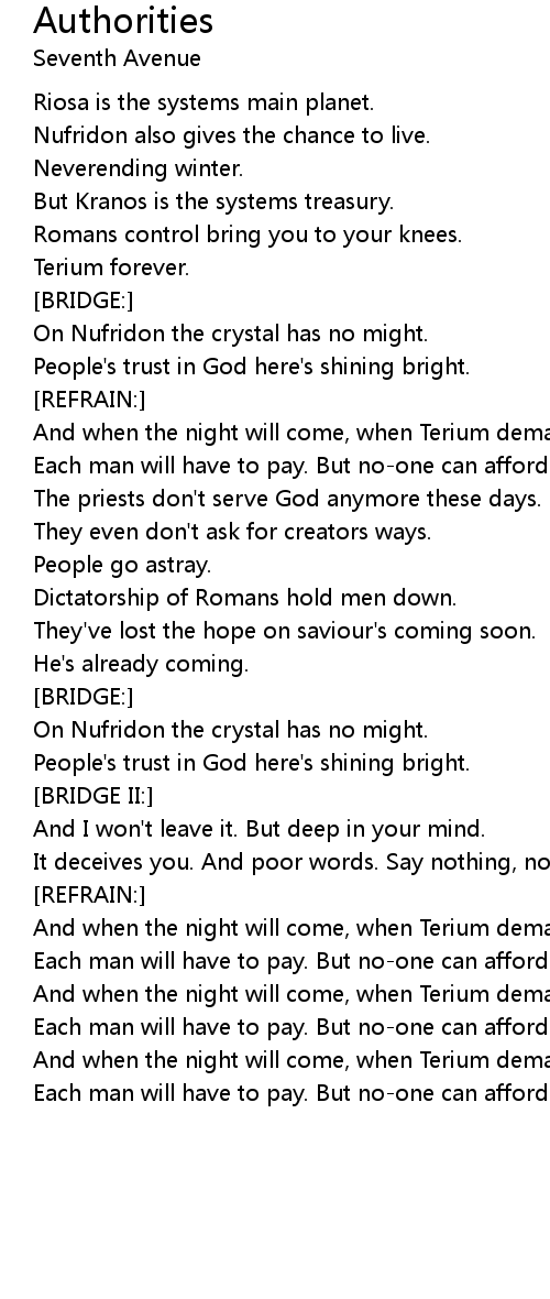 And when the night will come, when Terium demands it's final toll. |