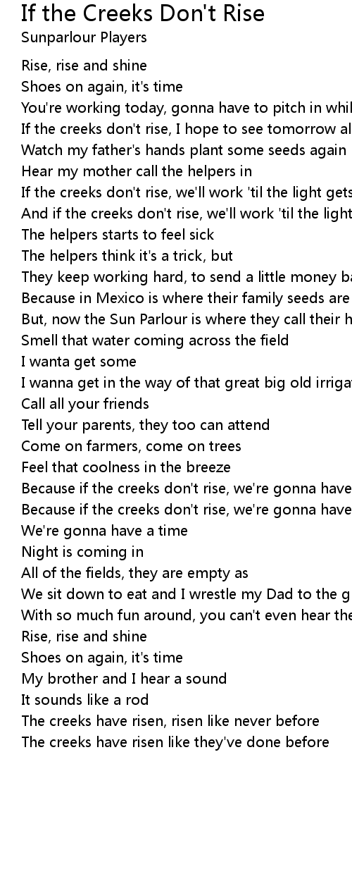 If the creeks don't rise, we'll work 'til the light gets dim |