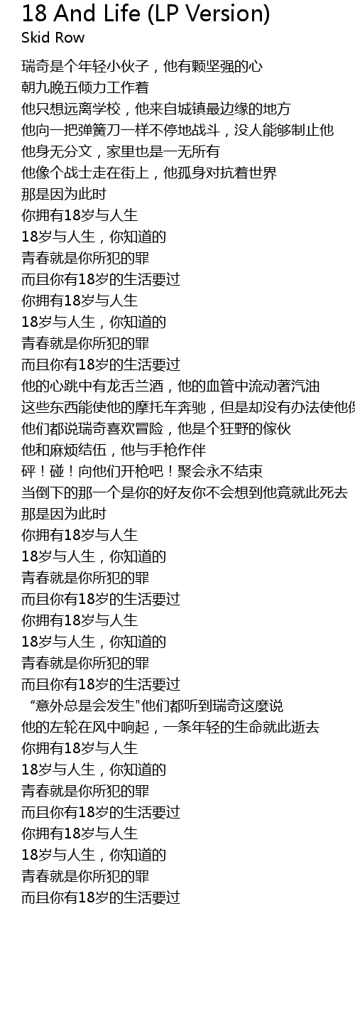| [02:58.17] | 18 sui yu ren sheng, ni zhi dao de |