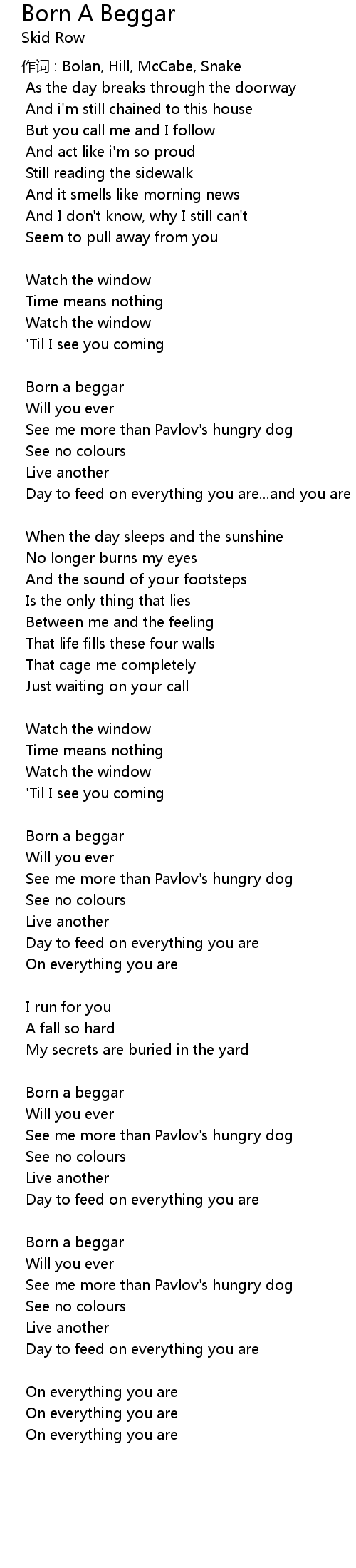 | 作词 : Bolan, Hill, McCabe, Snake | |