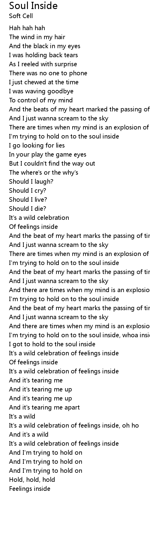 I'm trying to hold on to the soul inside, whoa inside inside, oh