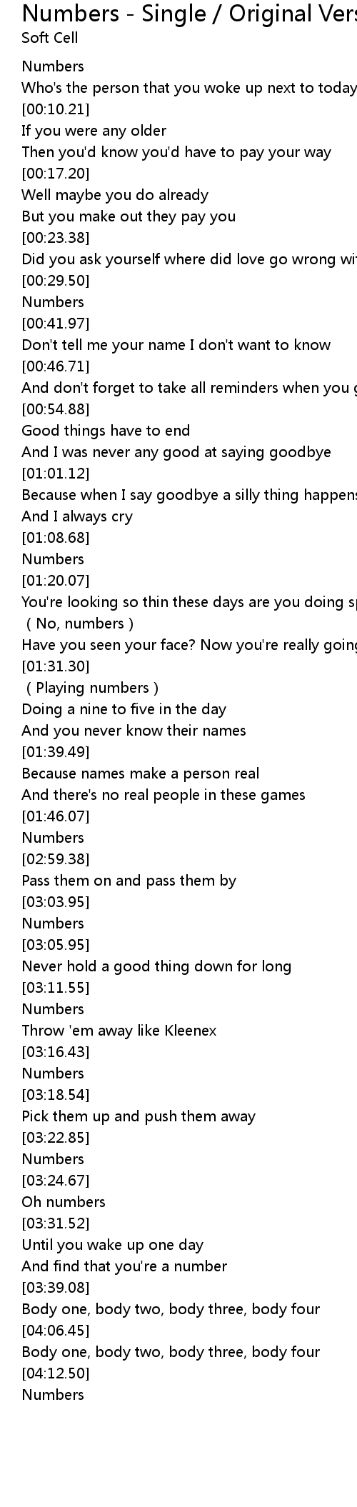 | [03:23.48] | Numbers |