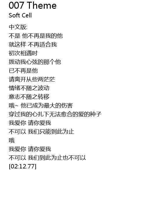 | [01:32.82] | 不可以 我们只能到此为止 |