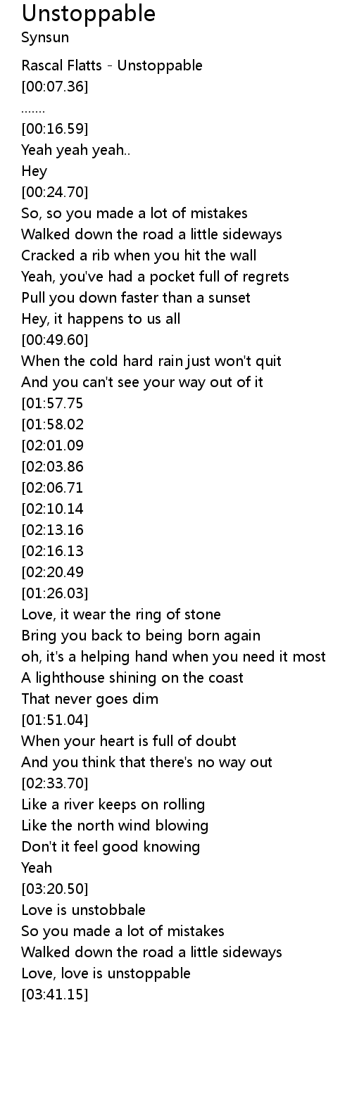 [00:01.12] Rascal Flatts - Unstoppable