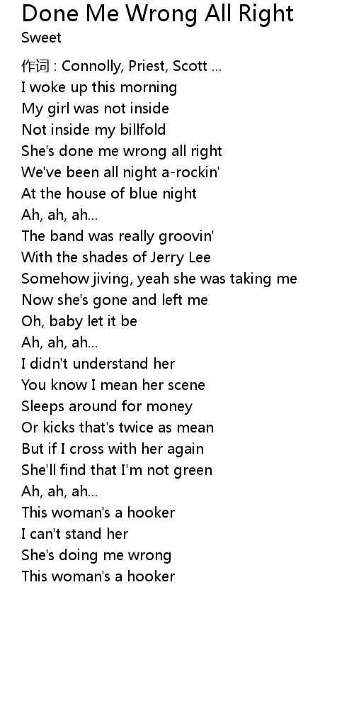 | She' s done me wrong all right | |