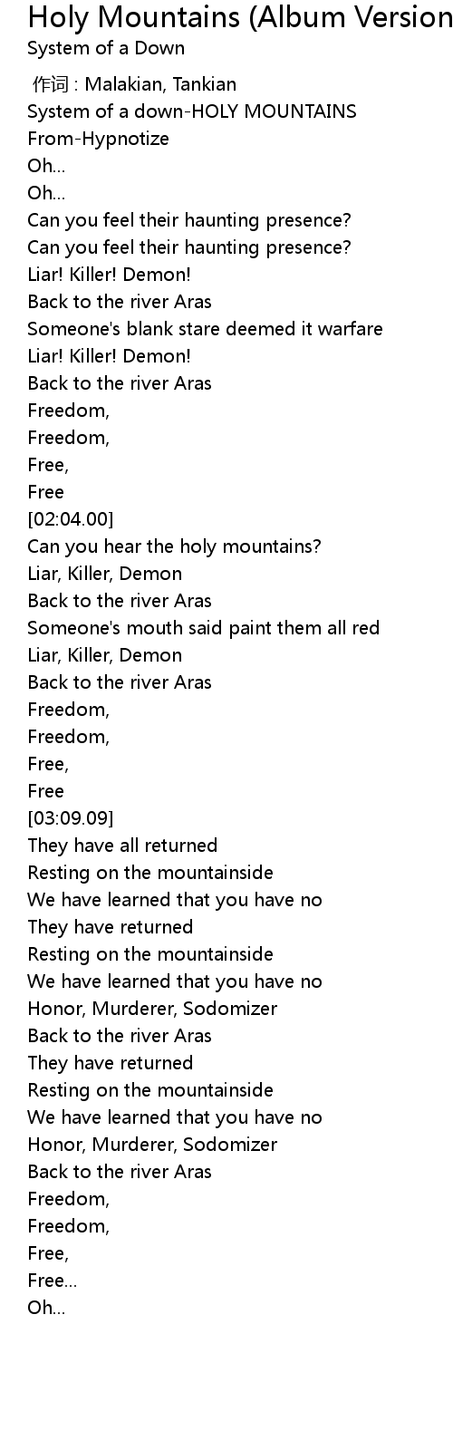 | [00:00.00] | System of a down-HOLY MOUNTAINS |