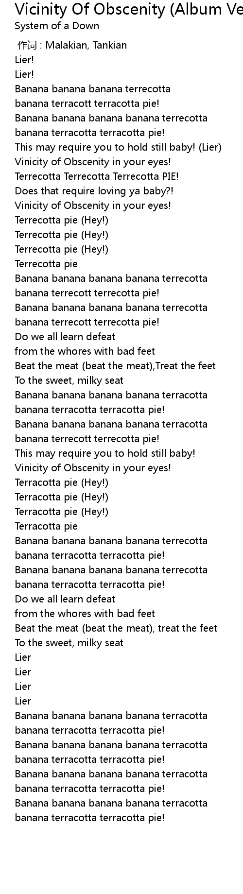| [00:58.73] | banana terrecott terrecotta pie! |