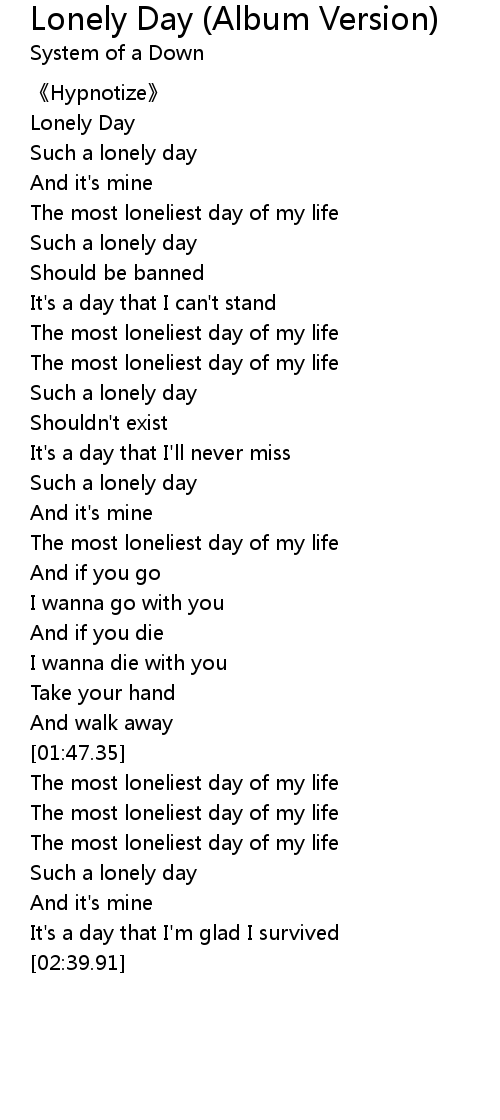 | [00:05.84] | Lonely Day |