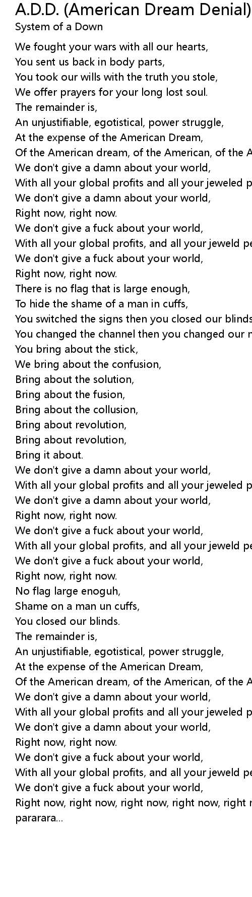 We don't give a damn about your world, |