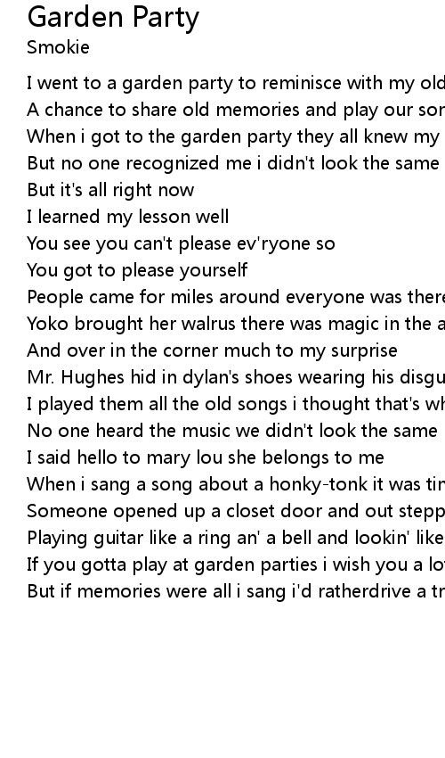 If you gotta play at garden parties i wish you a lot a' luck |