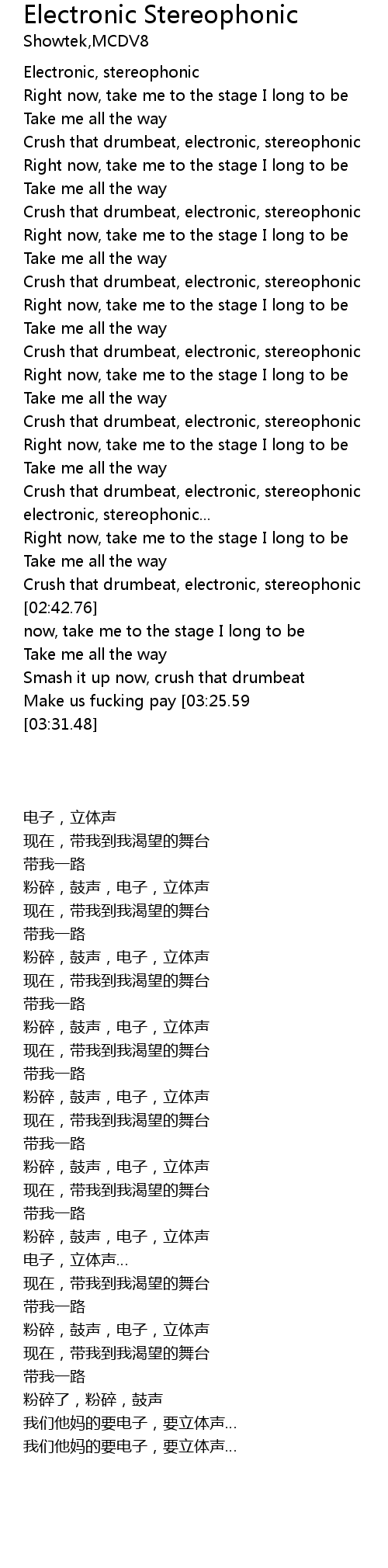 | [02:43.09] | Crush that drumbeat, electronic, stereophonic |