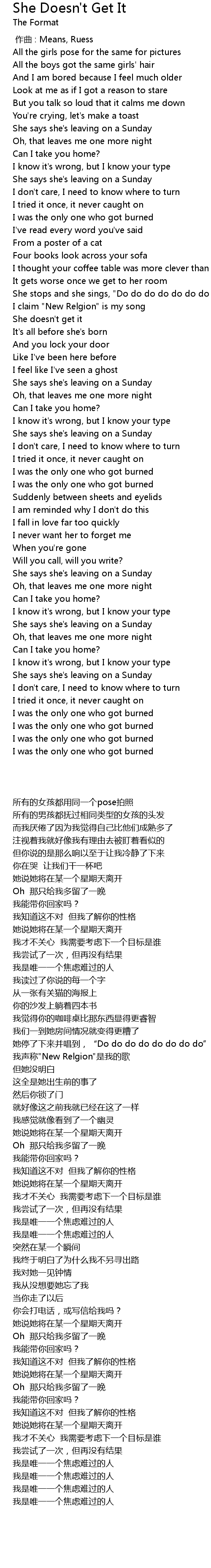 | [01:31.33] | She doesn't get it |