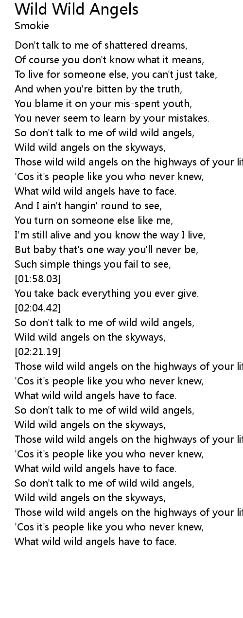So don't talk to me of wild wild angels, |