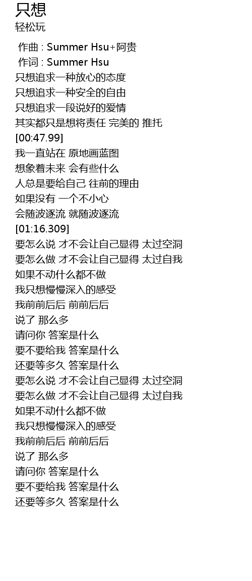 | [00:00.00] | 作曲 : Summer Hsu+阿贵 |
