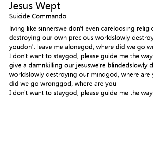 I don't want to staygod, please guide me the waykilling our childrenwe don't give a damnkilling our jesuswe're blindedslowly destroying our own precious worldslowly destroying our mindgod, where are youdon't leave me alonegod, where did we go wronggod, where are you |