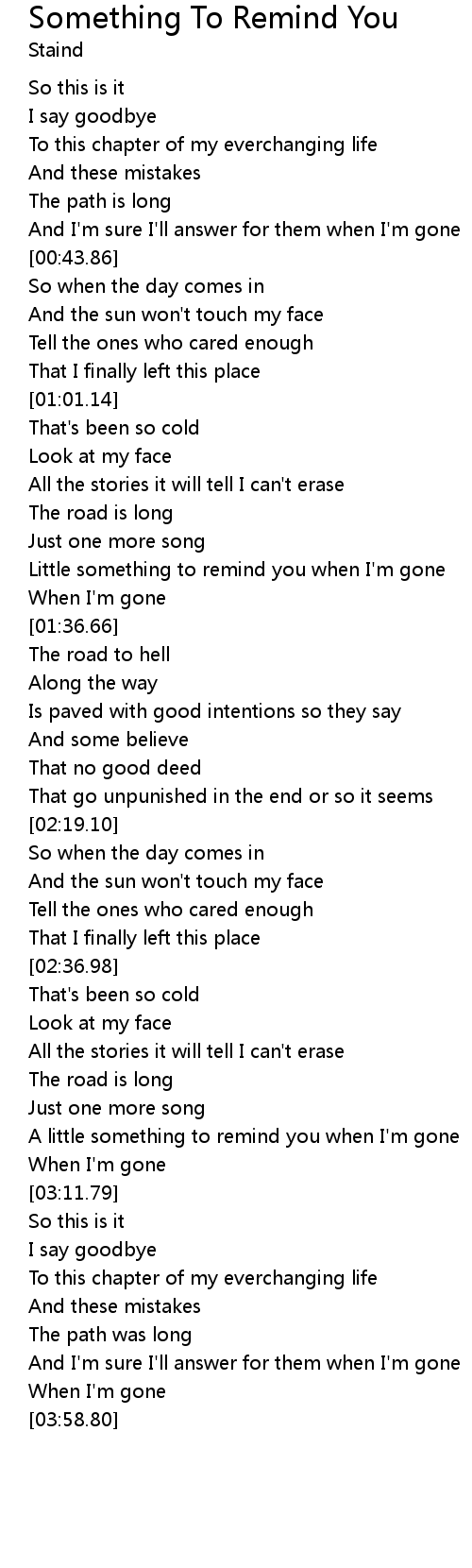 | [03:01.89] | A little something to remind you when I'm gone |