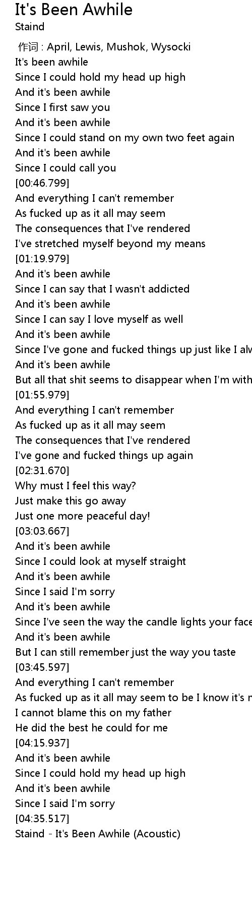 | [00:24.697] | And it' s been awhile |