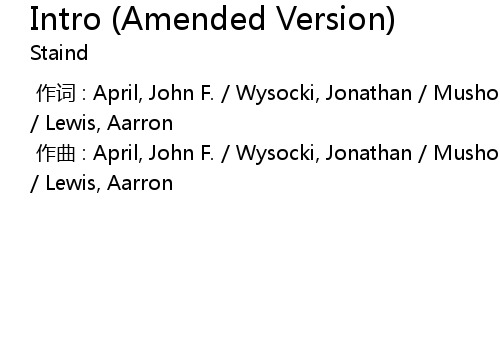 | [00:00.000] | 作曲 : April, John F. / Wysocki, Jonathan / Mushok Jr., Michael J. / Lewis, Aarron |