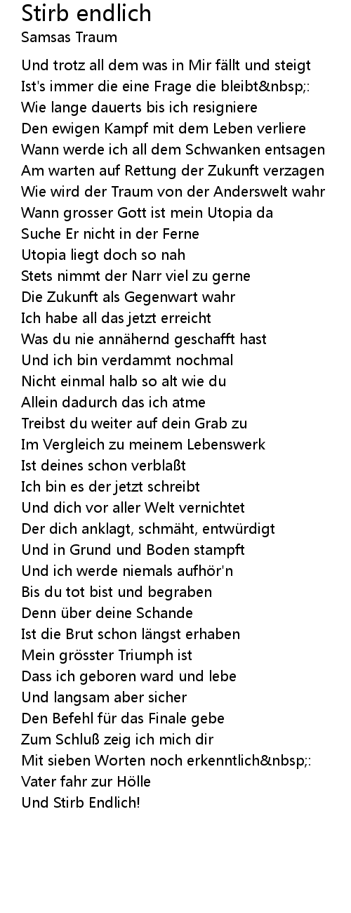 | Der dich anklagt, schm ht, entwü rdigt | |
