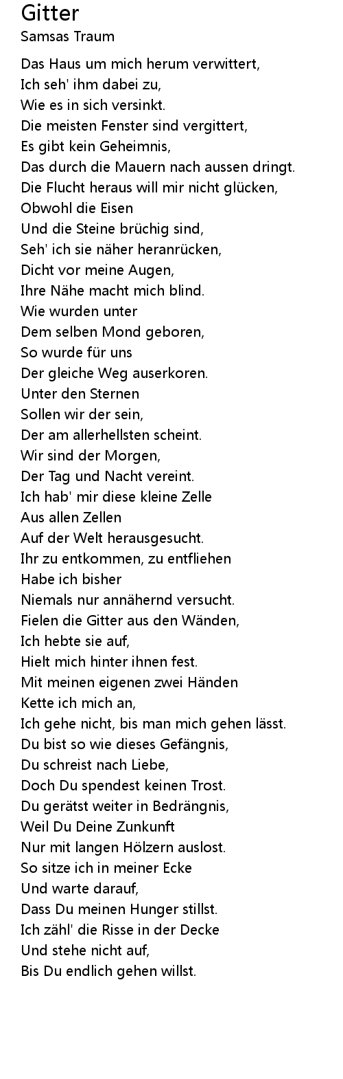 | Fielen die Gitter aus den W nden, | |