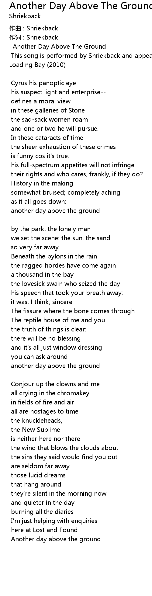 | This song is performed by Shriekback and appears on the album Life In The Loading Bay 2010 | |