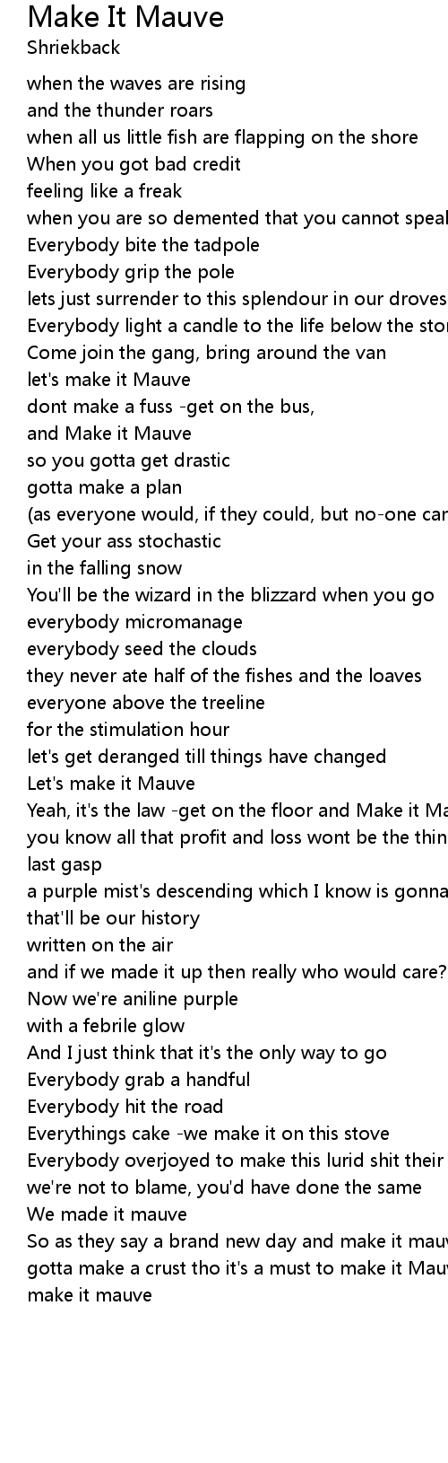 Yeah, it's the law -get on the floor and Make it Mauve |