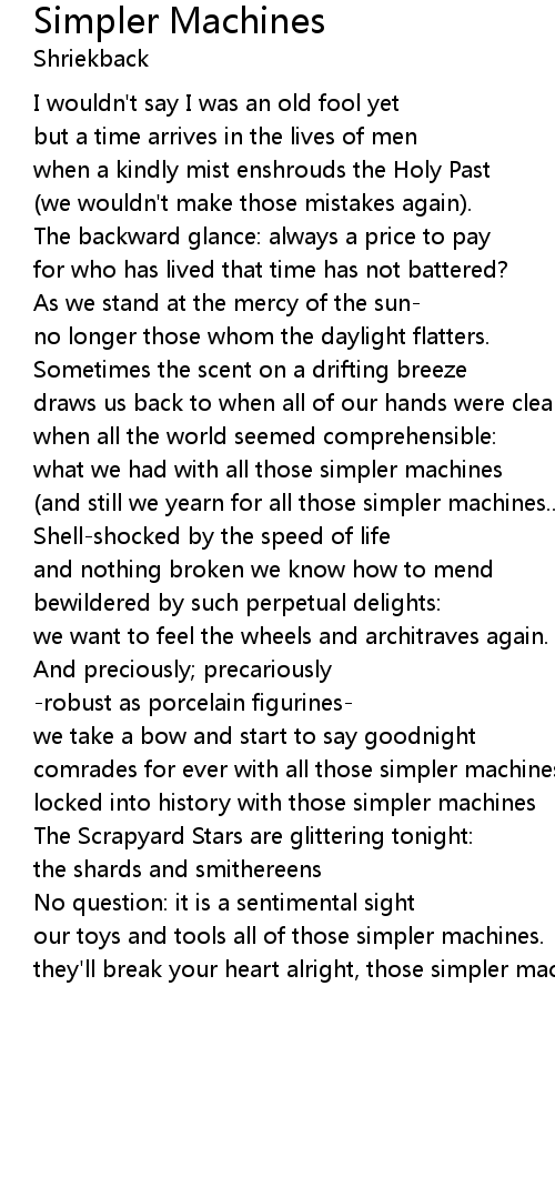 (and still we yearn for all those simpler machines...) |