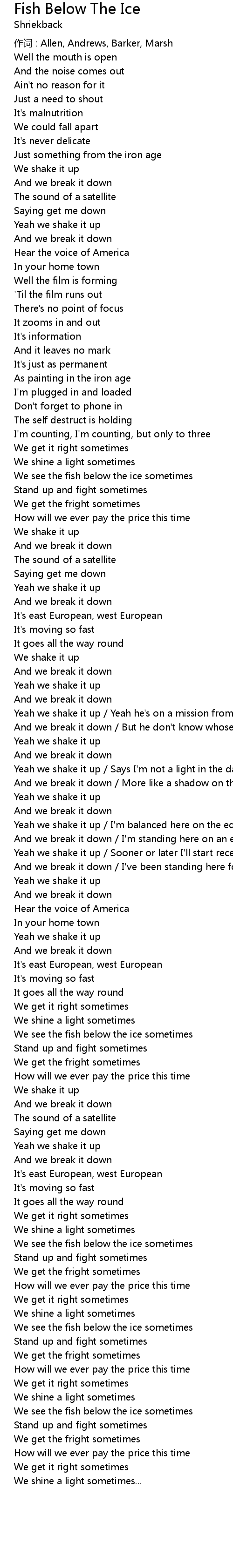 | 作词 : Allen, Andrews, Barker, Marsh | |