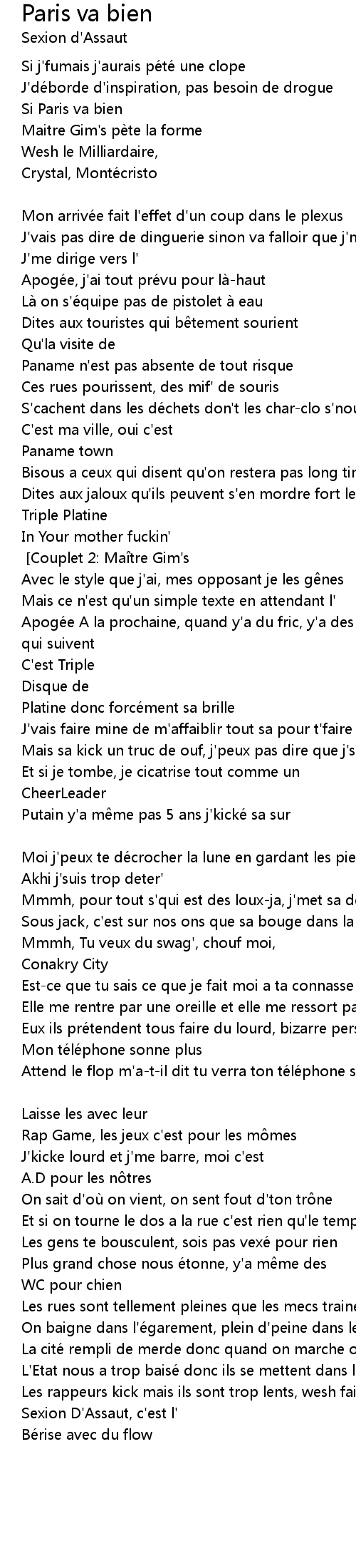 | Song | Paris va bien |