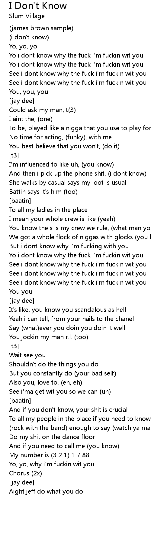 See i dont know why the fuck i'm fuckin wit you |