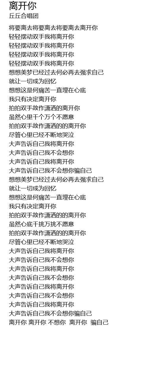 | [02:44.94] | 离开你 离开你 不想你 离开你 骗自己 |