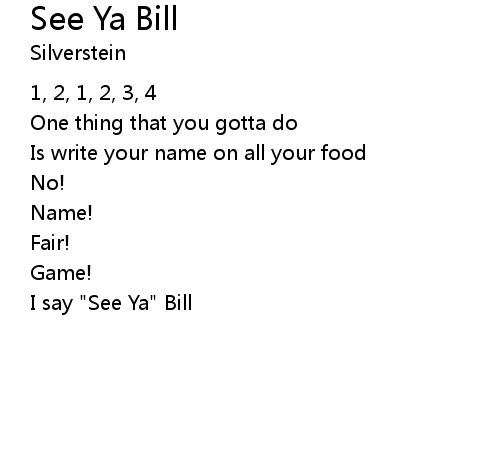 See Ya Bill Lyrics
