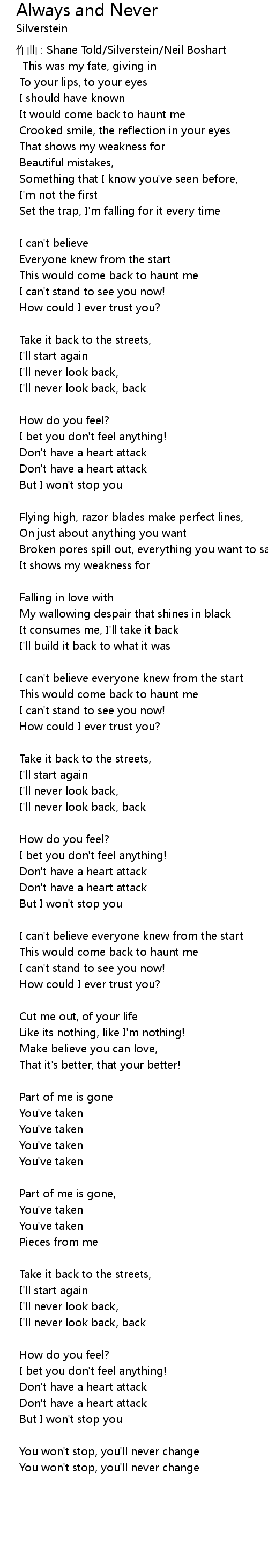 | 作曲 : Shane Told/Silverstein/Neil Boshart | |