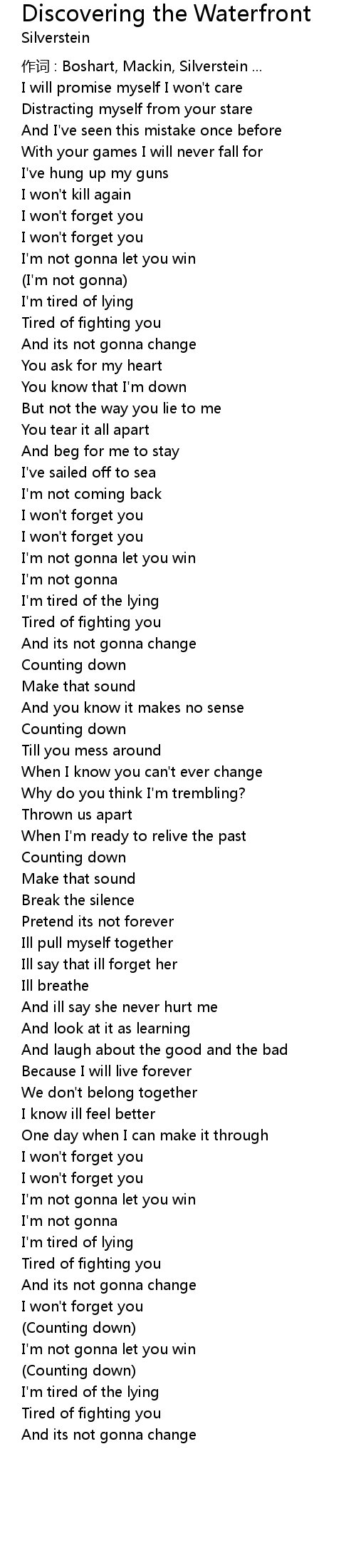 | 作词 : Boshart, Mackin, Silverstein ... | |
