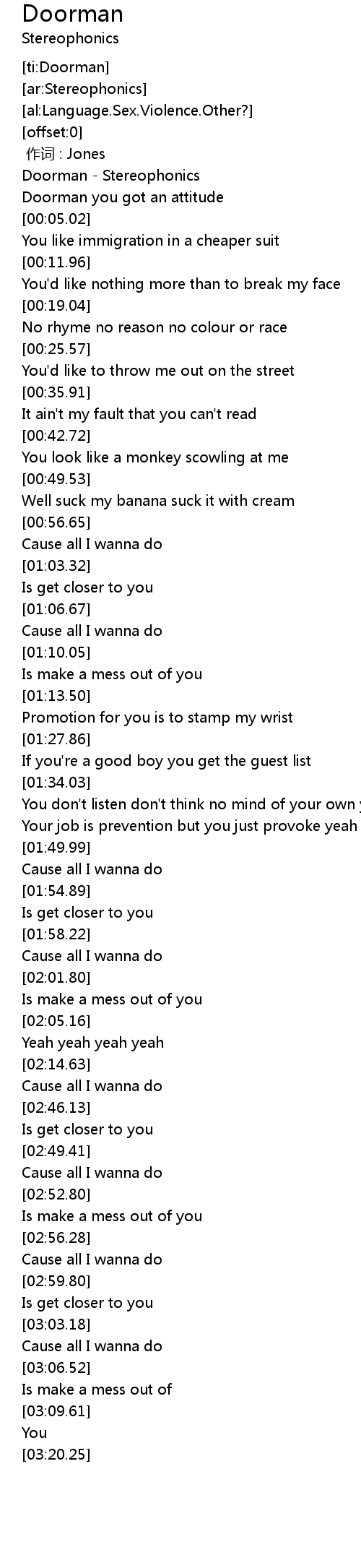 | [00:00.15] | Doorman Stereophonics |